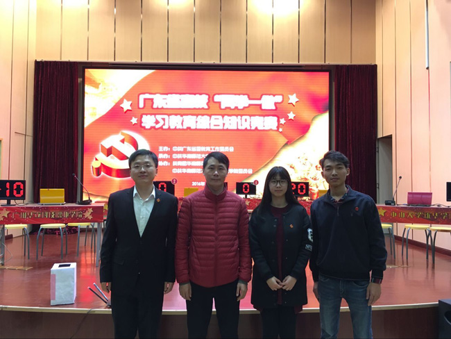 12月15日,由中共广东省委教育工作委员会主办的广东省高校“两学一做”学习教育综合知识竞赛在华南师范大学举行。kaiyun官网派出领队林秋贵校长助理,教师党员史航、学生党员林裕详、黄铧英参加现场决赛,与全省18所本专科高校师生代表同台竞赛。经过激烈角逐,kaiyun官网代表队荣获广东省高校“两学一做”学习教育综合知识竞赛三等奖。