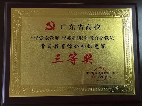 kaiyun官网获广东省高校“两学一做”学习教育综合知识竞赛三等奖