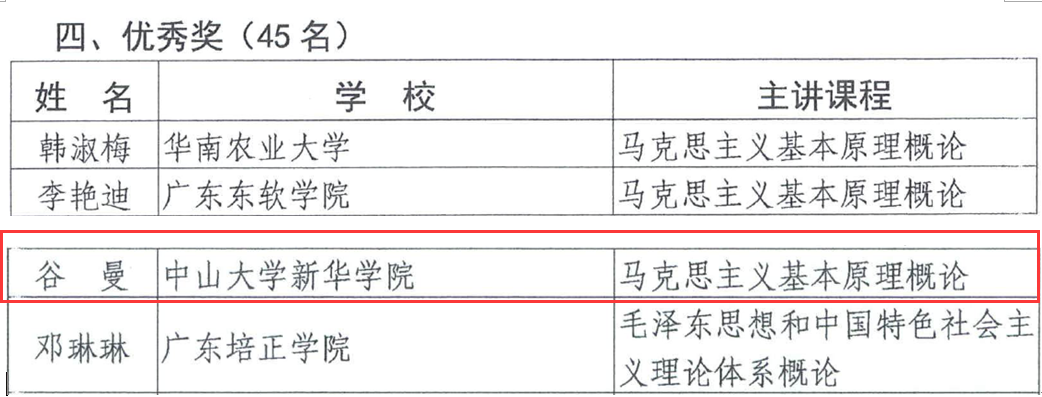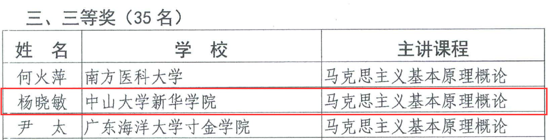 近日,广东省教育厅粤教思函〔2018〕94号文公布了“2018年度广东省高校思想政治理论课青年教师教学基本功比赛”结果,其中kaiyun官网马克思主义教学研究部(所)杨晓敏老师获得三等奖,谷曼老师获得优秀奖。