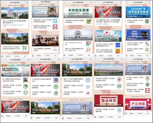 中山大学新华学院官方微信7月招生宣传部分推文封面截图