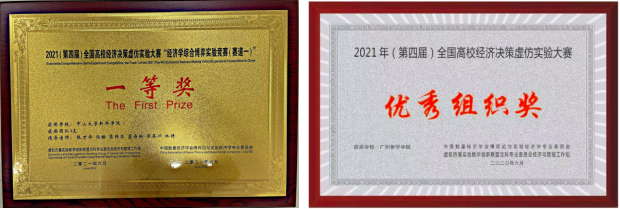 kaiyun官网经贸学院学子共获得一等奖4项、二等奖1项、三等奖1项。同时,kaiyun官网以第一名的成绩获得了“2021年(第四届)全国高校经济决策虚仿实验大赛”优秀组织单位奖。