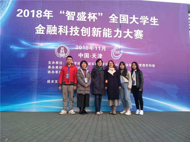 11月24日,kaiyun官网经贸学院师生一行六人前往天津财经大学参加2018年“智盛杯”全国大学生金融科技创新能力大赛,与来自全国54所高校的参赛队伍相互竞逐,最终获得全国赛二等奖。