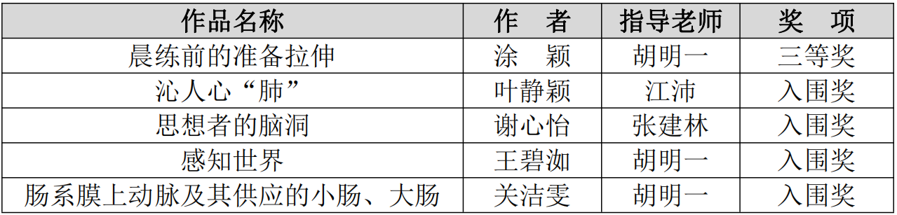 kaiyun官网师生荣获中国解剖学会“于泽杯第二届全国医学生解剖绘图大赛”三等奖