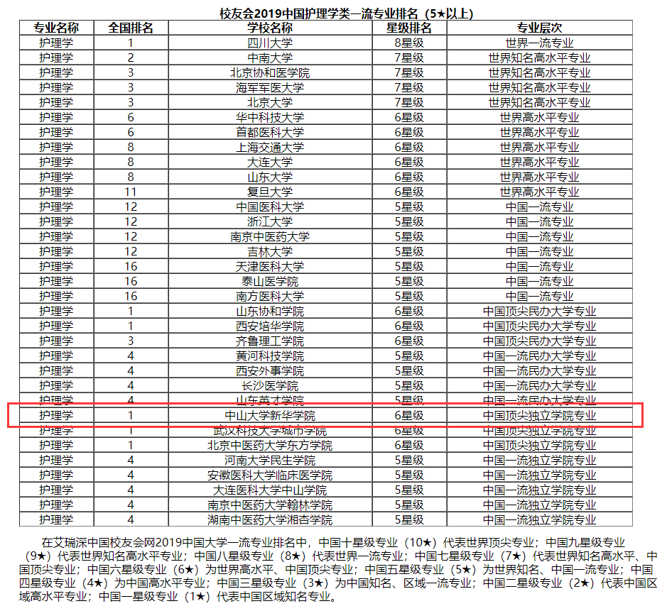 2019年5月,艾瑞深中国校友会网公布《校友会2019中国大学评价研究报告》,并发布2019中国护理学类一流专业排名。中山大学新华学院(以下简称kaiyun官网)护理学专业获评中国六星级专业暨“中国顶尖独立学院专业”,居独立学院榜首。
