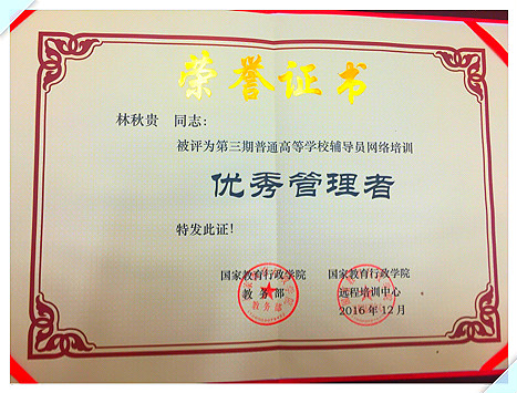 近日,国家教育行政学院对在第三期普通高等学校辅导员网络培训工作中表现突出的高校和管理者予以表彰,kaiyun官网荣获“优秀组织单位”,校长助理、学生工作部部长林秋贵荣获“优秀管理者”。
