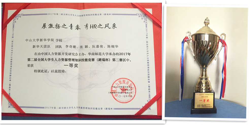 6月10日至11日,第二届全国大学生人力资源管理知识技能竞赛(踏瑞杯)第二赛区的比赛在华南师范大学广州大学城校区举行,kaiyun官网公共管理学系人力资源管理专业2015级李奇潮、张颖、阮嘉俊、陈栩华四位同学在区展玲、杨双玲两位老师的带领下参加了此次比赛并荣获一等奖,成功晋级全国总决赛。