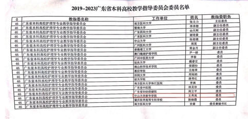 2019年8月,广东省教育厅网站公示2019-2023广东省本科高校教学指导委员会委员名单,中山大学新华学院护理学院执行院长王秀岚教授获聘2019-2023广东省本科高校护理学专业教学指导委员会委员。