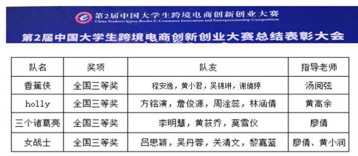 经贸学子喜获第二届全国大学生跨境电商创新创业大赛三等奖