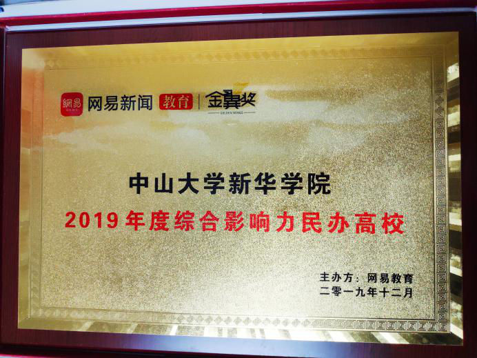 中山大学新华学院荣获网易教育“2019年度综合影响力民办高校”