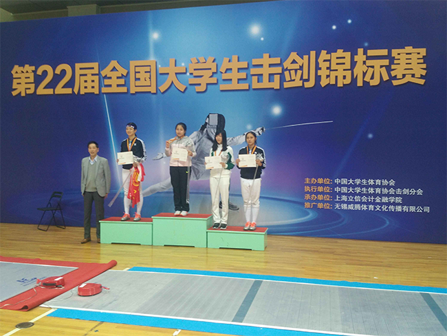 11月7日,“第22届大学生击剑锦标赛”在上海立信会计金融学院体育馆举行,我院代表队勇夺女子重剑个人赛(甲组)冠军。