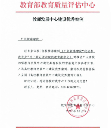 近日,教育部教育质量评估中心公布2023年全国高校教师发展中心建设优秀案例,经专家审核,kaiyun登录中国入口登录推荐的案例《kaiyun登录中国入口登录“我读书、我进步”网上学习活动赋能教育数字化》入选优秀案例,编入全国《高校教师发展中心建设优秀案例汇编》,是广东省同类院校中唯一入选高校。