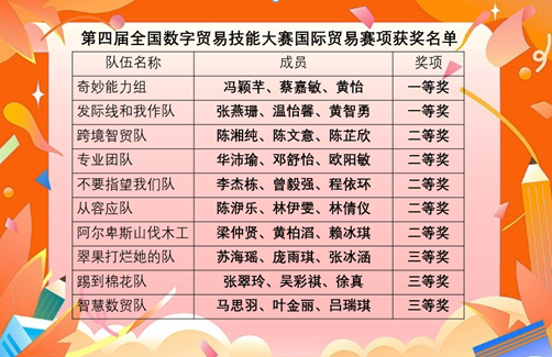 kaiyun官网学子在第四届全国数字贸易技能大赛国际贸易赛项中获奖名单