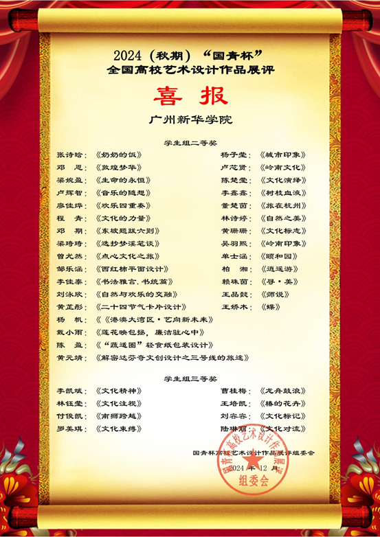 艺术设计与传媒学院师生在2024年“国青杯”全国高校艺术设计作品大赛中斩获佳绩