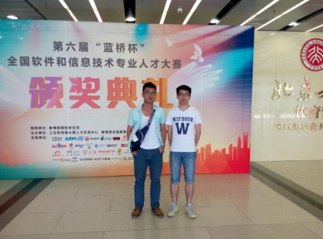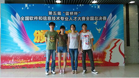 2014年,赵老师带领李智勇、杨慧、钟佛保、肖云龙和李俊楠五位同学参加了“蓝桥杯”北京总决赛。2011级李智勇同学获得了本科院校Java组的全国总决赛一等奖、钟佛保获得Java组全国总决赛三等奖,其他三位同学获得了C/C++组别的总决赛优秀奖。本次北京总决赛取得了历史性的突破,夺得了全国总决赛一等奖。