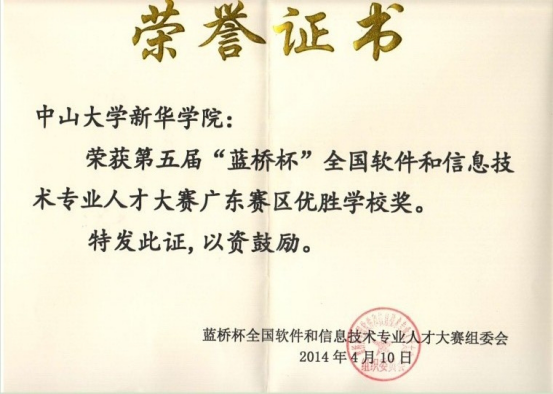 这些年,信息科学学院在各项学科竞赛中屡获佳绩,为kaiyun官网赢得了众多荣誉:2014年第五届“蓝桥杯”全国软件专业人才设计与创业大赛本科院校Java组全国总决赛一等奖,2015年全国大学生互联网软件设计大赛华南赛区二等奖,2015年第六届“蓝桥杯”全国软件和信息技术专业人才大赛全国总决赛国家二等奖,2016年第十一届“思科网院杯”全国大学生网络技术大赛全国…一等奖、华南区三等奖,2016年广东省大学生计算机设计大赛三等奖…