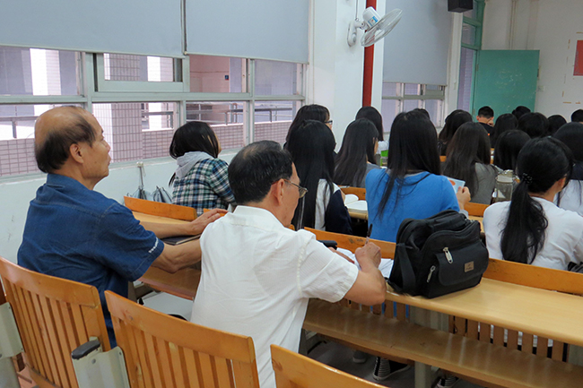 潘琪教授和陈荣冠副教授在课室听课