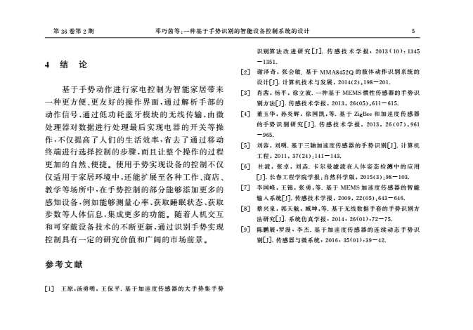 接下来,我们通过邓巧茵以第一作者于2017年4月在统计源核心期刊《计算机技术与自动化》刊物发表的论文《一种基于手势识别的智能设备控制系统的设计》,来感受这位勤于学习、善于思考、敢于创新的酷女孩的学术范儿。