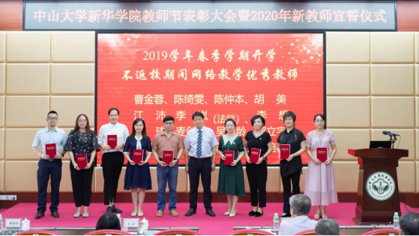 麦剑荣(左一)获得中山大学新华学院2020年教师节表彰荣誉
