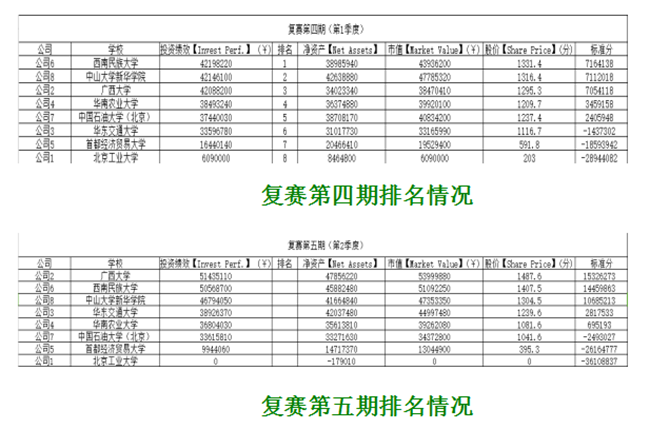 复赛第三期,我们是小组第五名,同样地,越到后期越要思前想后地考虑战略的可行性。第三期,我们公司的现金状况是有少量欠款(透支)。考虑到要第四期现金流要走正、股息的派发和增加净资产的情况,我们选择了使用增发的策略,在市场上直接筹资,利用筹资所获得的钱使现金流走正以及现金有余额,配合股息的派发和净资产的增加,把股价提上去,从而实现操纵股价上升。正因为这样的策略,我们第四期得到小组第二名的地位,至于第五期变成了第三名,我们认为就是决策错误加上了别的队伍有大量的库存可以供出售,提高了最后一期的销售额。