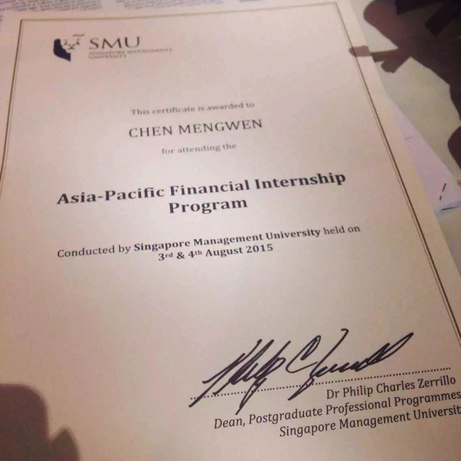 13中文陈梦雯:在新加坡的5天里,我们去了国立大学商学院和管理大学,学习到了高净值客户综合增值服务以及信托、债券、票据等相关金融知识;我们还去了新加坡税务局、博物馆、植物园,从不同层面了解了当地的历史文化。第6天,我们便前往香港,开始了几天没日没夜的课题任务。尽管很累,但小组成员和导师一直相互鼓励,一起克服困难,按时完成任务。项目结束了,大家很不舍,但是有相聚就有别离,这些天相处的日子带给我们更多的是成长和友情,感谢小伙伴们,我们后会有期。