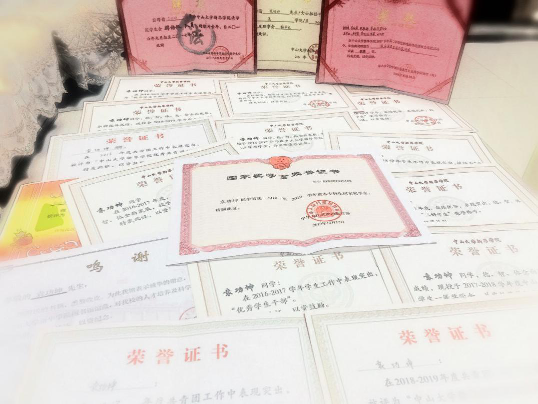袁功坤,中共党员,中山大学新华学院2016级法学院法学专业学生,在校期间担任班长。曾获国家奖学金,学校特等奖学金、一等奖学金、三等奖学金、优秀团员、优秀学生干部、三好学生,全国大学生环保知识竞赛优胜奖、思想政治理论课社会实践活动优秀奖等荣誉。在校期间,他多次参与辩论赛活动,其团队获第三届“立德杯”辩论赛“十佳辩论队”称号。在老师的指导下,袁功坤顺利通过了2020年国家法律职业资格考试。