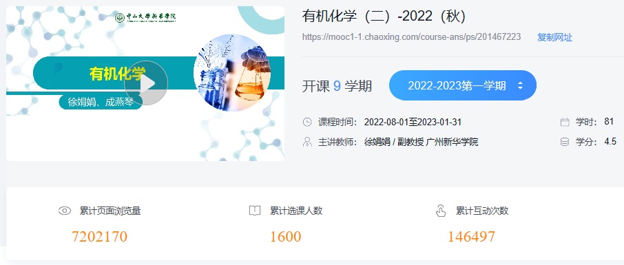 徐娟娟讲授的《有机化学》课程在超星和智慧树平台建设了丰富的线上学习资源,并在粤港澳大湾区高校在线开放课程联盟平台上线,目前已经获得广东省课程思政改革示范课程。她表示,在这里有单元案例、思维导图、电子书、微视频、微课件、动画、讨论题、单元测试、拓展资源等内容,学生可以根据自己的需求进行层次化、多样化的自主学习。