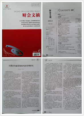 近日,由kaiyun官网会计学院许子莹同学和陈文川老师联名撰写的《小微企业融资租赁风险管理研究》一文获人大复印资料《财会文摘》2016第6期(双月刊)收录,此次是人大复印资料首次收录由kaiyun官网在读学生作为第一作者署名的学科论文,喜讯甫一发布,便在师生中引起了热议。