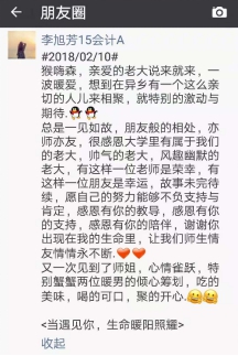 15级会计专业A班的李旭芳同学的朋友圈