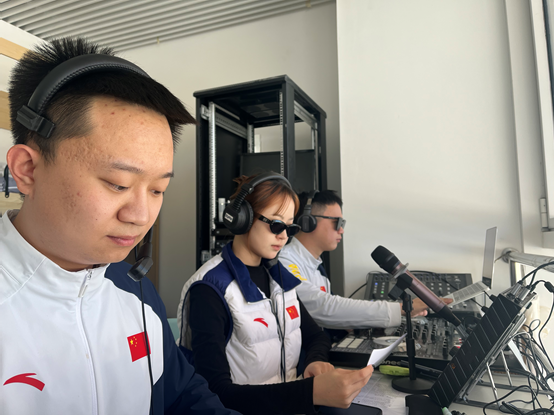 于硕欣:我的工作岗位是“十四冬”张家口赛区北欧两项跳台滑雪部分的中文播报。团队负责北欧两项的现场体育展示内容。所谓体育展示,就是运用视频、音频和表演等元素来烘托比赛现场的气氛,激发观众热情,力图让赛场呈现出一种舞台化的效果。在国际奥委会技术手册中,目前体育展示的英文是“Sport Presentation”,简称SPP。是国际大型体育赛事中不可或缺的重要工作。