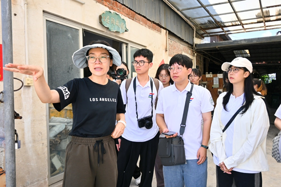 何宛桢老师(右一)与实践队参观非物质文化遗产传承基地菊城陶屋